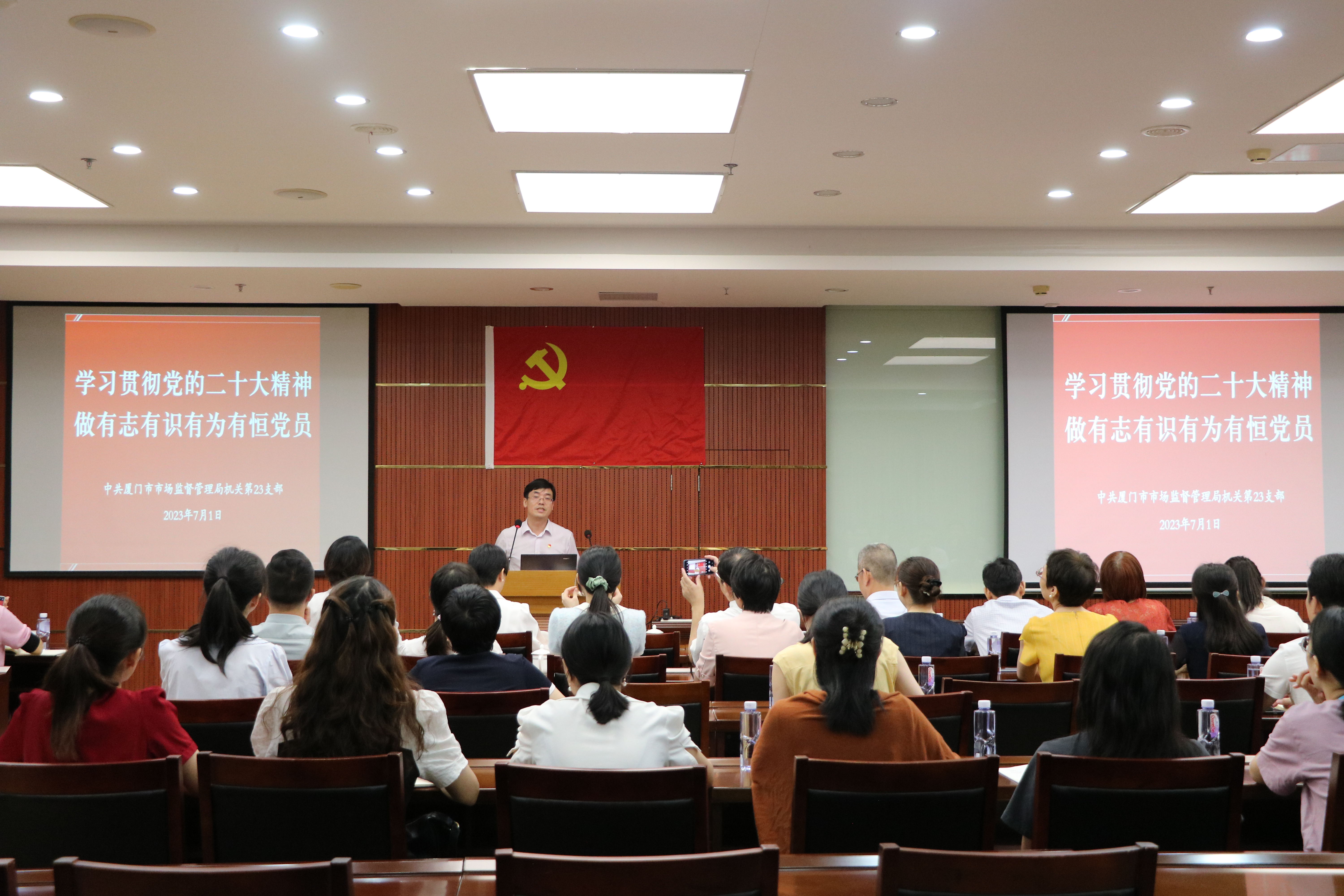 為深入學習貫徹黨的二十大精神,慶祝中國共產(chǎn)黨成立102周年,充分發(fā)揮黨建工作對企業(yè)經(jīng)營管理的引領力,鷺燕(福建)集團有限公司黨支部積極主動對接監(jiān)管部門基層黨支部,與中共廈門市市場監(jiān)督管理局機關第二十三支部共同開展主題黨日活動。2023 年6月25日, 活動在鷺燕總部大廈如期舉行,中共廈門市市場監(jiān)督管理局機關第二十三支部全體黨員、鷺燕(福建)集團有限公司黨支部黨員以及鷺燕集團廈門區(qū)域部分成員公司總經(jīng)理、質(zhì)管干部參加了活動。