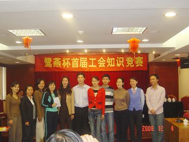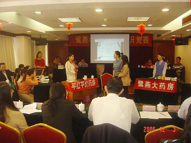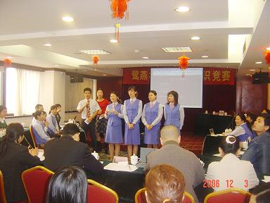 廈門鷺燕大藥房有限公司于2006年12月3日在廈門廬山大酒樓隆重舉行鷺燕杯首屆工會知識競賽,此次工會知識競賽由6個工會小組各自選派4名選手參加,比賽環(huán)節(jié)包括團隊介紹、啦啦隊互動、演講比賽、必答題、搶答題、猜詞秀、才藝表演等,形式多樣、內容豐富。比賽現(xiàn)場還邀請了一些供應商的代表作為嘉賓評委,為比賽進行現(xiàn)場點評及頒獎。