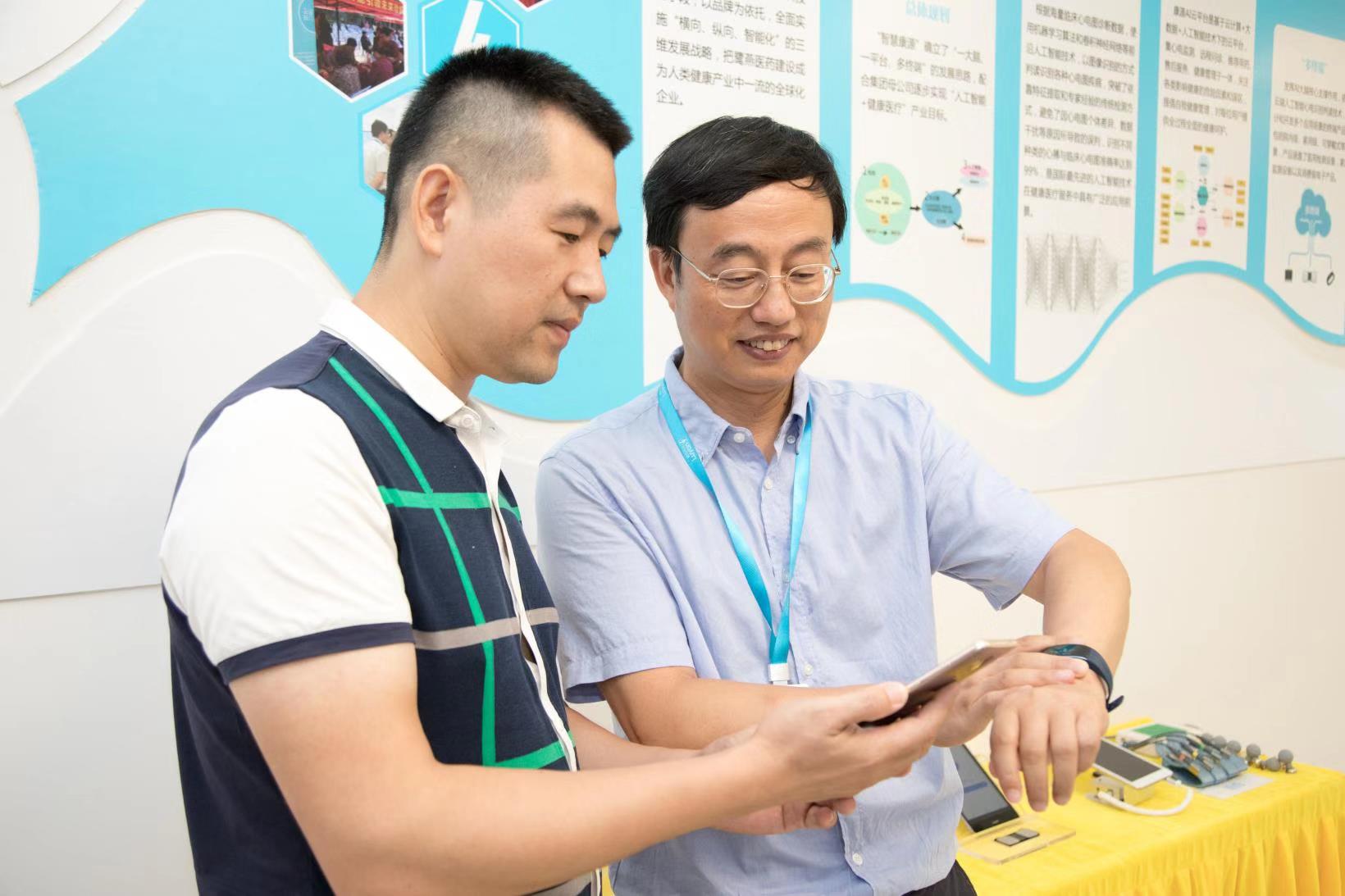不過,在今年的第十六屆“6·18”中國·海峽項目成果交易會上,鷺燕醫(yī)藥旗下福建省康源圖像智能研究院(以下簡稱:康源研究院)讓人們足不出戶查心電圖成為了現(xiàn)實。經(jīng)過近兩年的沉淀,康源研究院成功研發(fā)出了“人工智能心電圖識別判讀系統(tǒng)”,并適時推出了一款名為“AI心手環(huán)”的應(yīng)用產(chǎn)品。只要戴上這個手環(huán),將手指夾在手環(huán)的觸點上,打開手機APP,就會實時顯示心電圖,血壓、心率一目了然,數(shù)據(jù)傳輸?shù)皆贫送瓿膳凶x后,還會得出健康建議反饋給用戶,儼然就是一個便攜式家庭智能醫(yī)生。